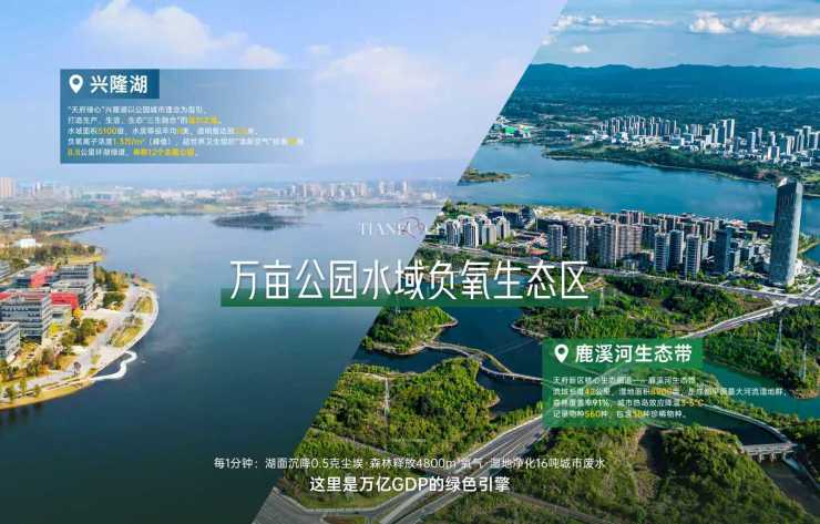 万亩公园水域负氧生态区 兴隆湖5300亩+鹿溪河湿地公园4500亩,比三环内所有公园总和还要大。堪称世界级公园城市典范。