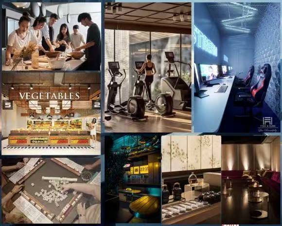 高品质住所不止于物业本身的设计与服务,栖遇还针对本身住客群体,打造了13楼共享空间,同样由杜鑫先生亲自操刀设计!极致700㎡共享空间涵盖了“健身空间、艺展空间、桌游棋牌空间、会客会议空间、观影空间、自田办公空间、共享厨房”等7大空间,共享空间90%的项目对栖遇住客免费开放!