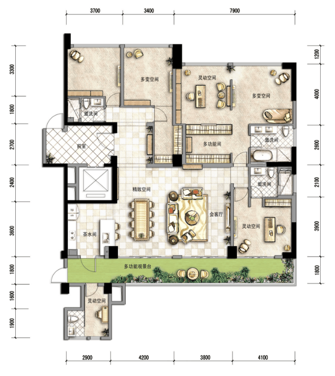3+1房设计,4厅4卫