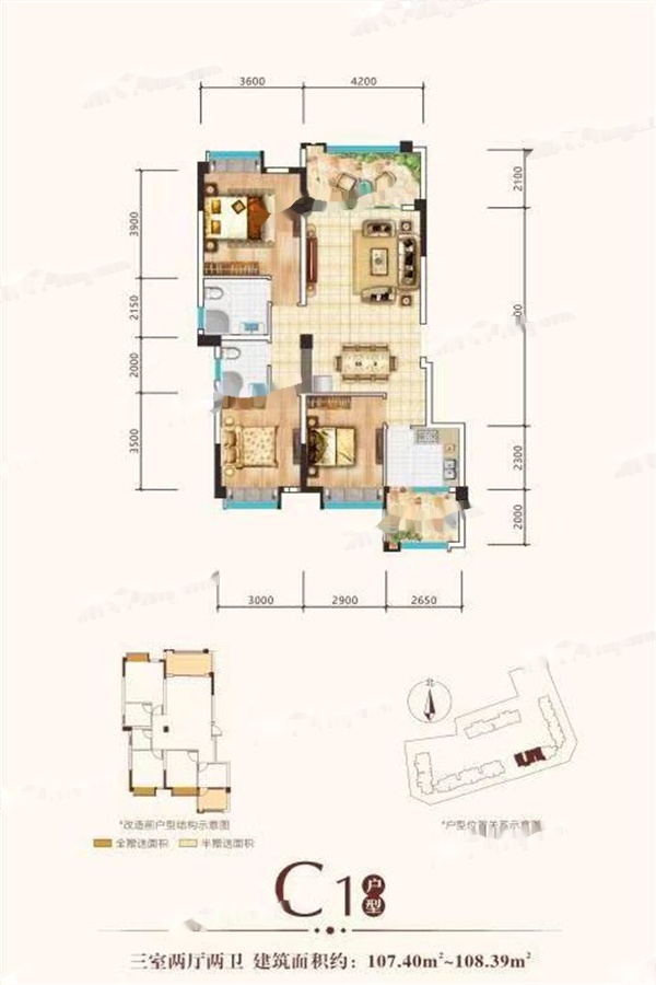 3室2厅2卫-C1 3室2厅1厨2卫 107.4