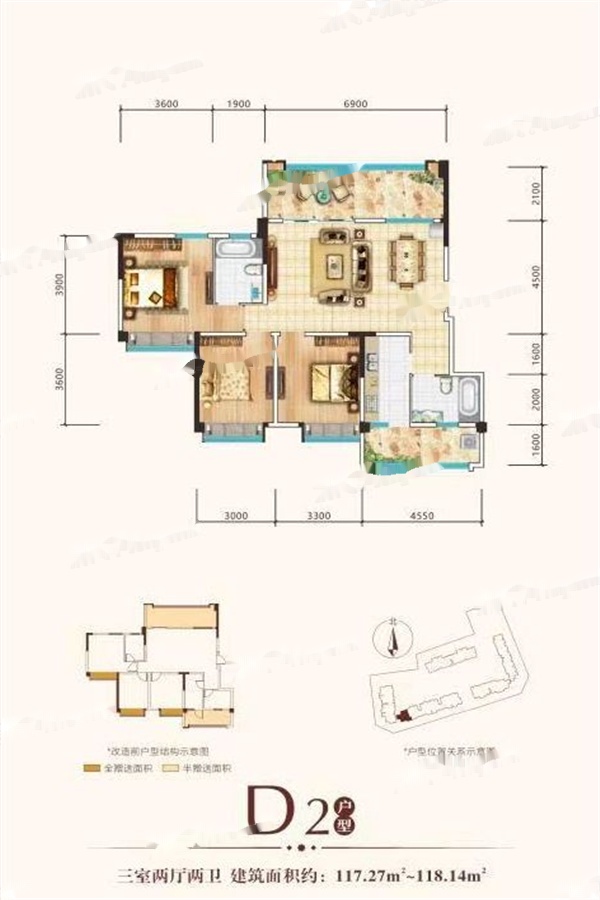 3室2厅2卫-D2 3室2厅1厨2卫 117.27