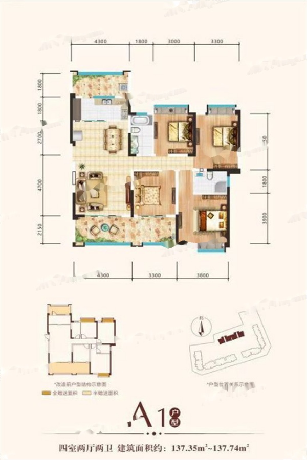 4室2厅2卫-A1 4室2厅1厨2卫 137.35