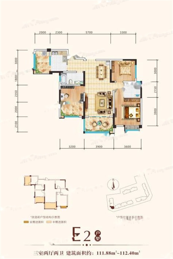 3室2厅2卫-E2 3室2厅1厨2卫 111.88