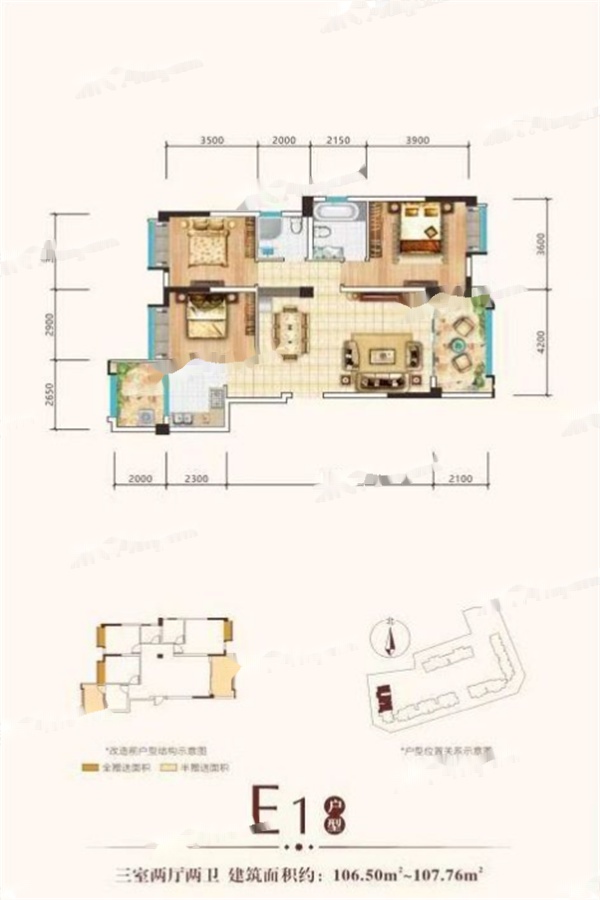 3室2厅2卫-E1 3室2厅1厨2卫 106.5