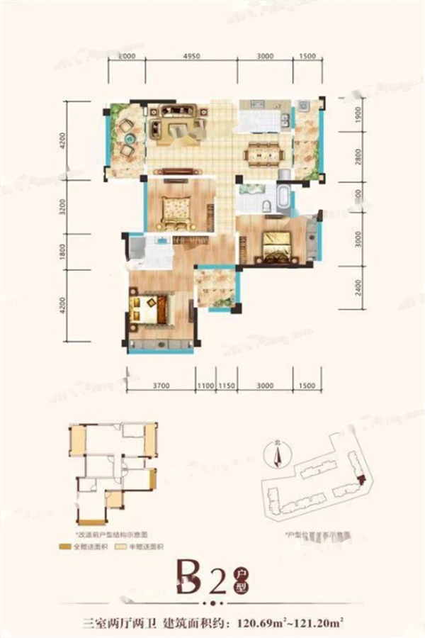 3室2厅2卫-B2 3室2厅1厨2卫 120.69