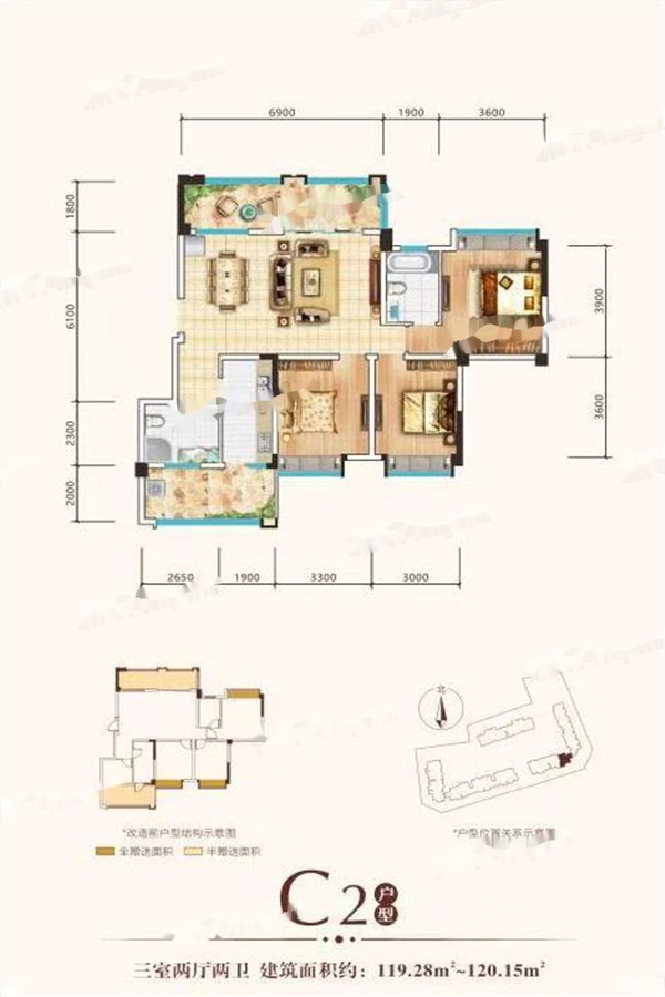 3室2厅2卫-C2 3室2厅1厨2卫 119.28