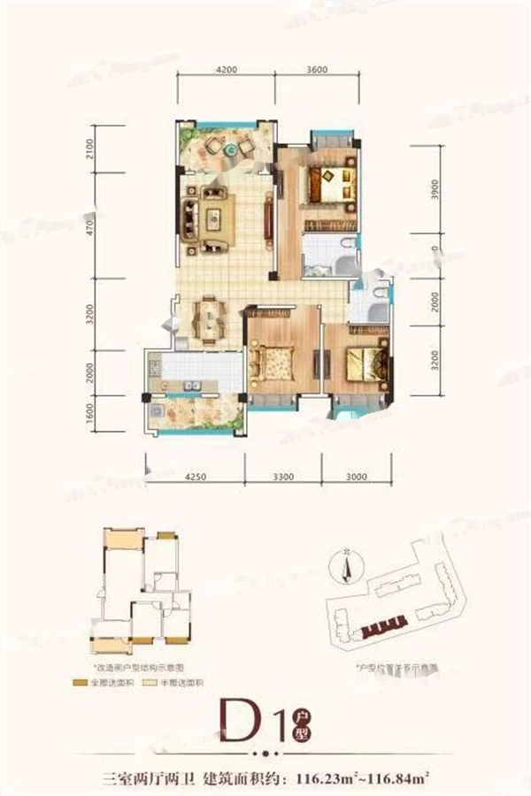3室2厅2卫-D1 3室2厅1厨2卫 116.23