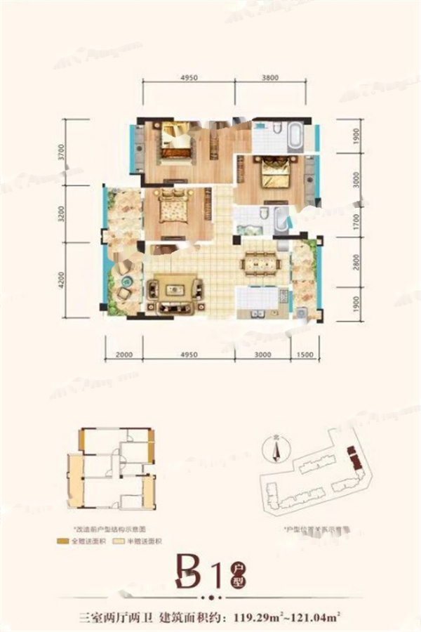 3室2厅2卫-B1 3室2厅1厨2卫 119.29