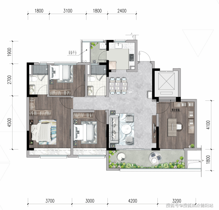 联通式阔尺7m阳台,迎接更多清风阳光·主卧套房设计·户型方正,利用率高