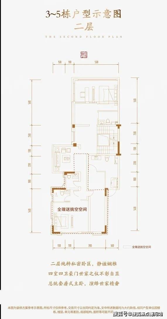 一层拥有270度环幕全景花园,仅客厅开间就达到6.5米,老人房进深也达到5.5米,但餐厅空间较为压抑。二层包含全挑高赠送空间,需要业主自行搭建。三层为6.5米开间主卧,但开窗面偏小,该层还有星空露台。