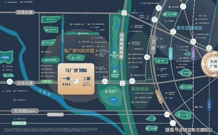 第一,项目位于青羊新城的非遗板块,与价格高昂的蔡桥板块仅隔着一条四环路、相距2个地铁站,而马厂坝TOD更是官方规划的青羊新城中心。