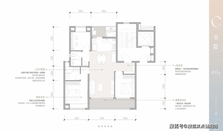 C户型 建面约103㎡三室两厅两卫