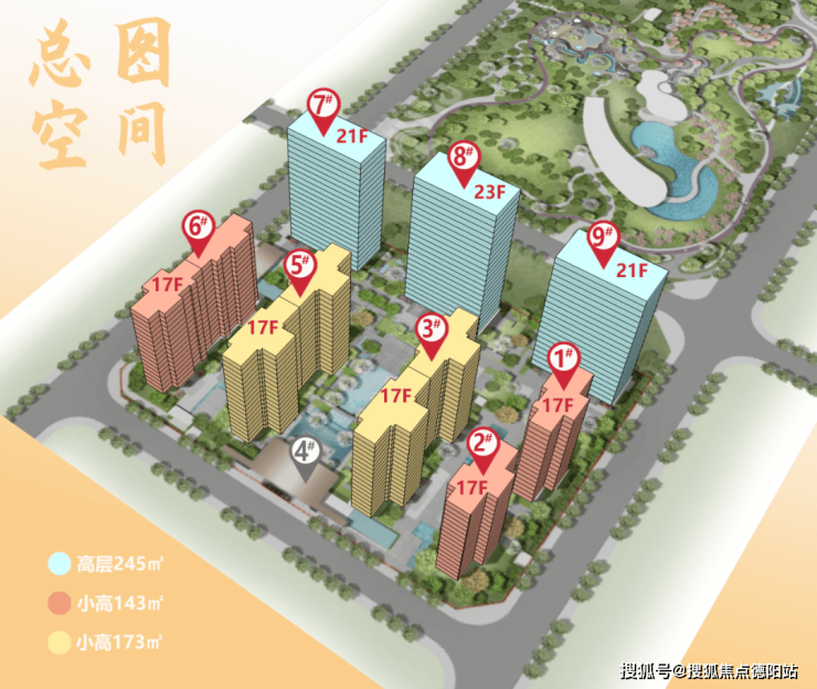 第二,项目没有为了追求货值最大化而做高低配,而是整体打造为17~23F的纯高层社区,将建筑密度降到了17.81%,这就意味着项目有了更大的中庭空间去打造景观。