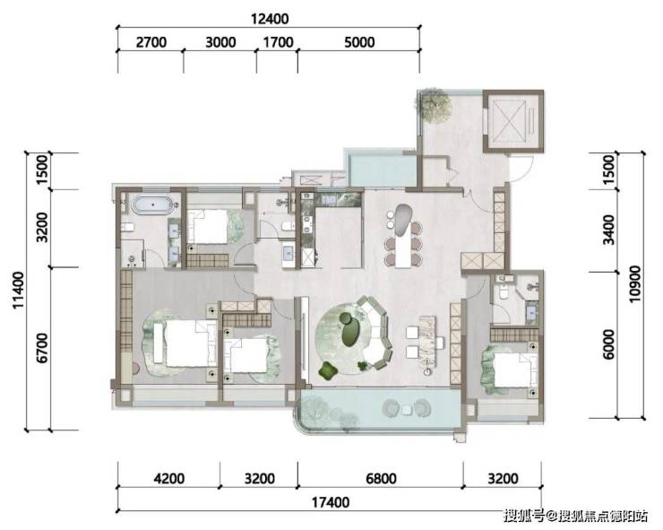 除了有一个卫生间是暗卫以外,这个户型可以说是相当完美了。