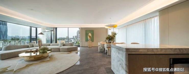 LDK区加上景观阳台,整个社交面积超过了80㎡,使客、餐以及中西双厨等功能都能相当舒展的布局。