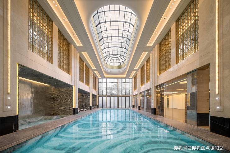 项目复刻其经典装饰主义,约10.5m挑高大堂,挑空拱门架构的恒温泳池、孔雀廊般的艺术展廊,层叠线条,艺术家真品装置等,让峯层生活从此同频华尔道夫