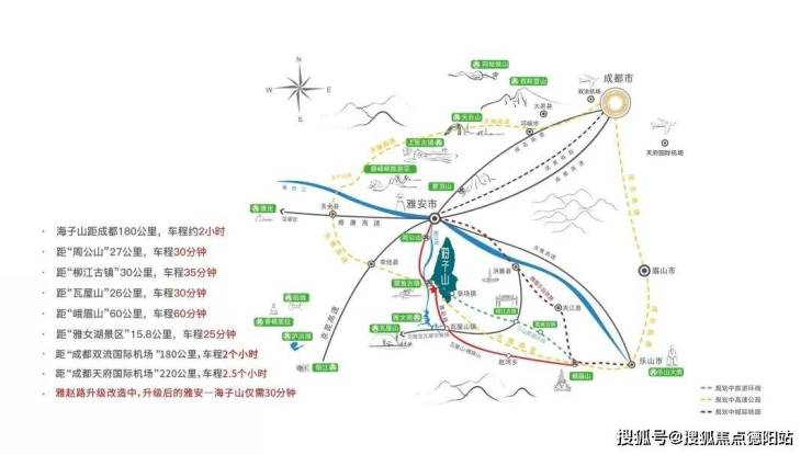 项目地处京昆高速、雅康高速、乐雅高速以及遂洪高速所形成交通矩阵的中心地带,距离成都、青城山等川内商业枢纽或旅游点均不超过200公里,享受大川西全域旅游资源,是真正意义上的两小时旅游经济生活圈。