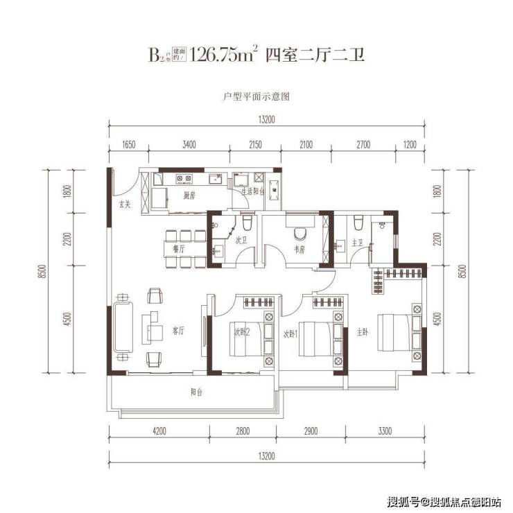 138㎡:四房横厅,南北通透,兼顾功能与舒适度。