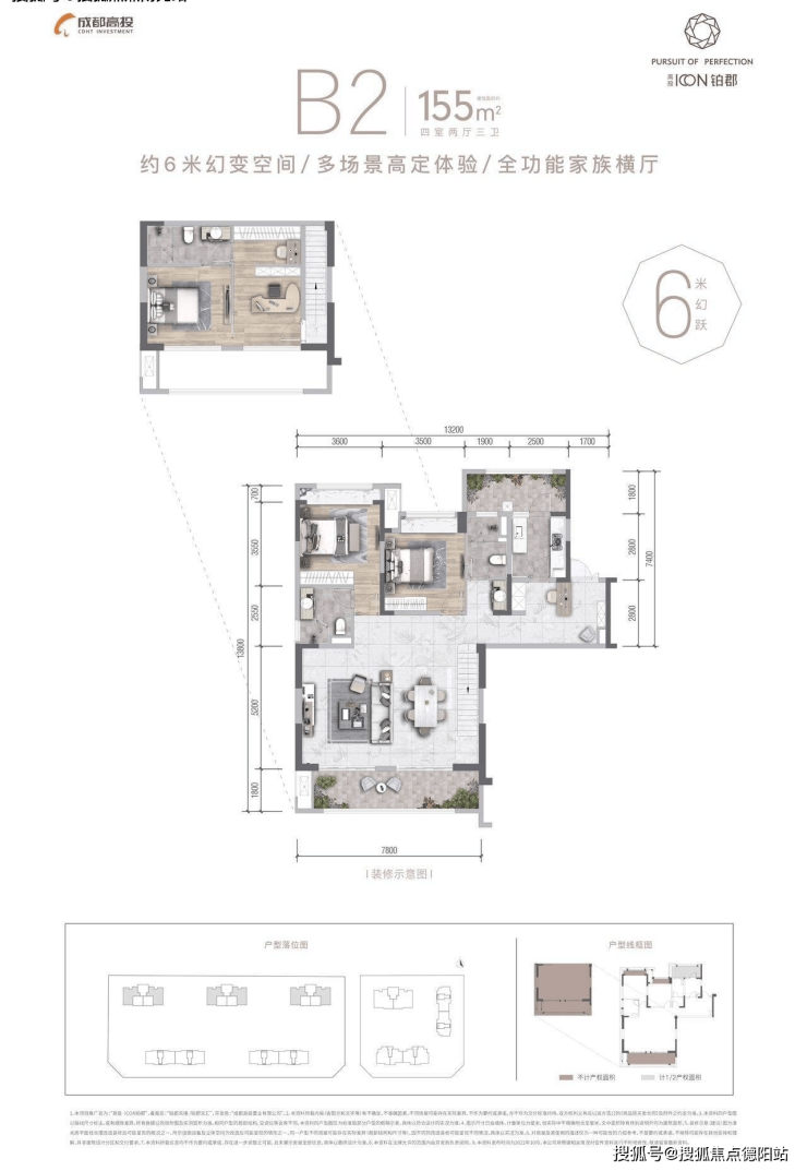 客厅6米挑高,超大空间分区配置,跃层独立私密主卧豪华套房,南北双阳台通透采光,近8m双观景阳台享无敌视野。