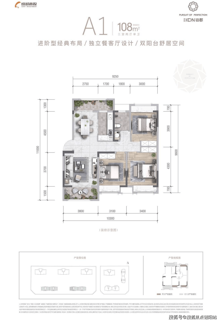 10层低密度洋房平层,1梯2户南北通透,动静分区,双阳台设计,高端精致三房。