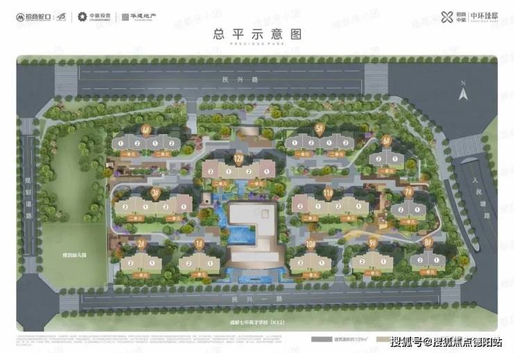 12号楼南侧朝中庭,再往南为动车站段,享500米以上无遮挡视野;北侧是仅1F的会所,紧靠的七中英才学校占地虽大,但是层高低。