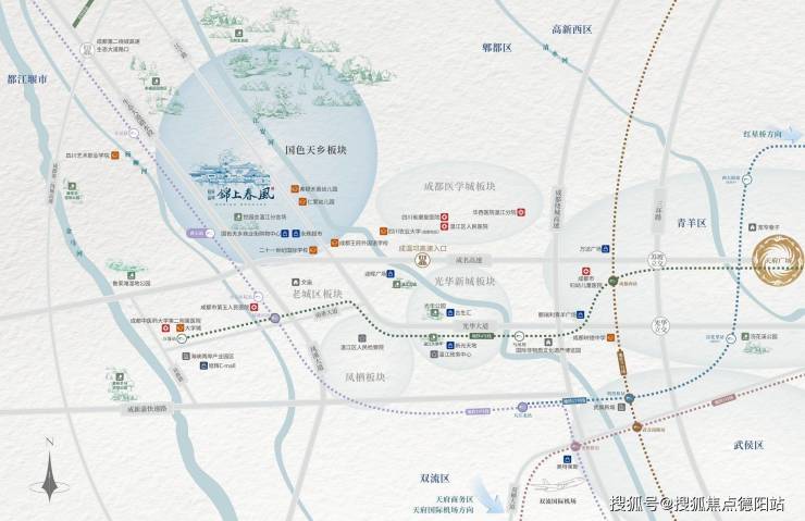 项目地处温江核心区国色天乡板块,距成都主城仅15公里。轨道交通优势显著:地铁4号线直达城区,17号线、19号线双轨交汇。紧邻19号线黄石站,可快速抵达双流及天府国际机场。