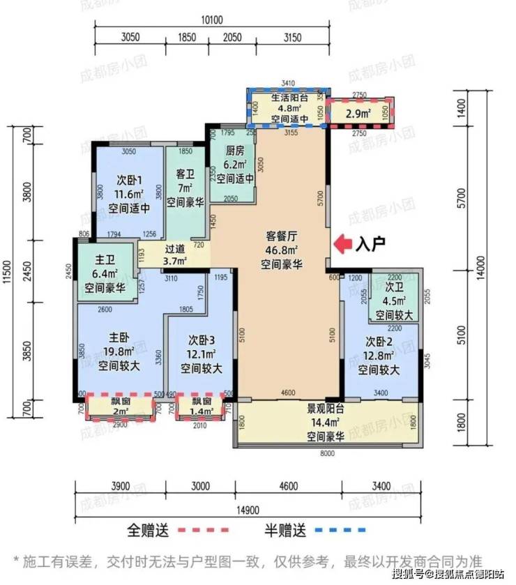 户型整体没啥槽点,唯一不好的就是客厅比较“小气”,虽然有改成大横厅的条件,但需要多花时间和money!