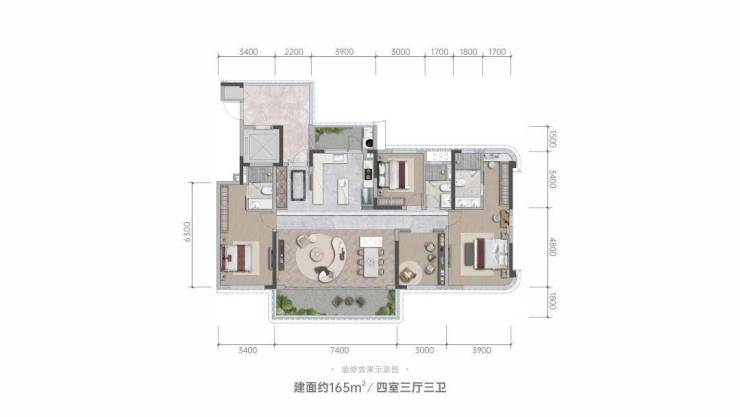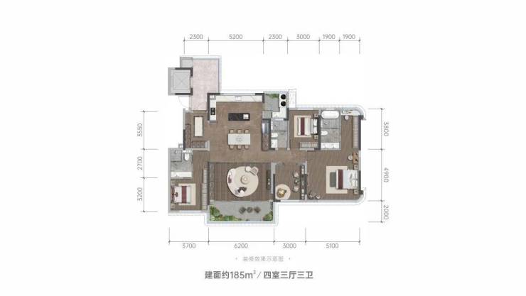 建面约165/185/215㎡,全南北通透纯板式四房三卫
