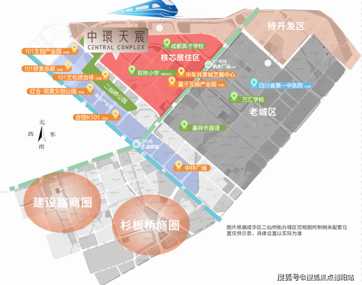 根据2017年提出的“中优”战略,成都规划有「两中七副」九大中心:主城三环内只有两个发展中心,一个是天府锦城中心、另外一个就是项目所处的八里庄副中心。