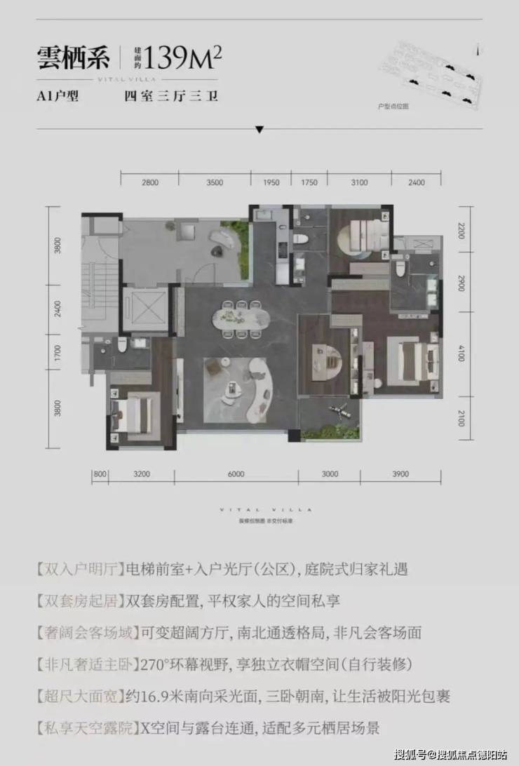 此次华润天宸上院的户型主打一个超大光厅与多阳台赠送