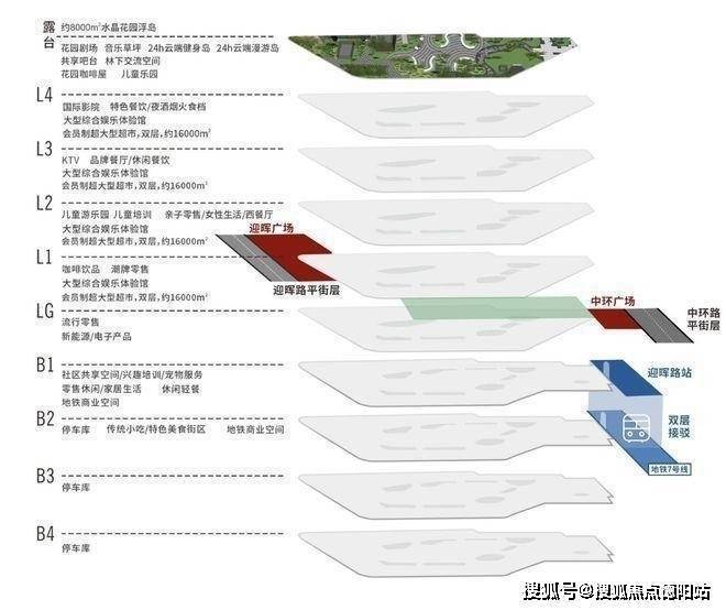 4、一站式消费新地标,7号线无缝链接 满足区域内年轻客群生活所需的24小时悦活主场。 创新三重入户 一重入户:迎晖路地铁A/B口,无缝接驳光厅入户。 二重入户:双首层酒店级大堂入户。 三重入户:约8000㎡水晶花园浮岛入户。