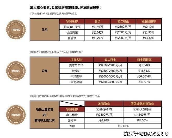 2:高回报:周边公寓租金3000+,而本案无缝接驳地铁迎晖路站,自带16万㎡城市级购物中心,未来租金将超越周边,回报率高达7%。