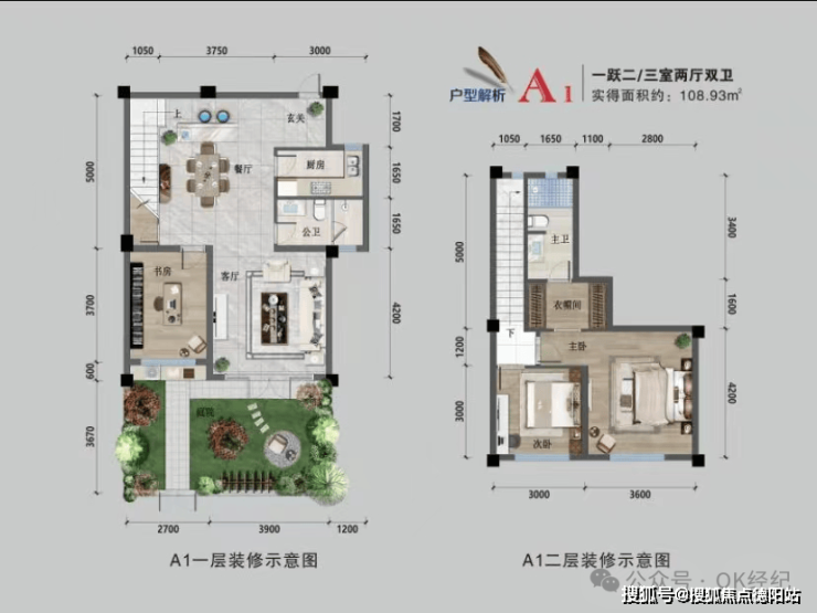 一跃二:实得108-112㎡,花园20-30㎡
