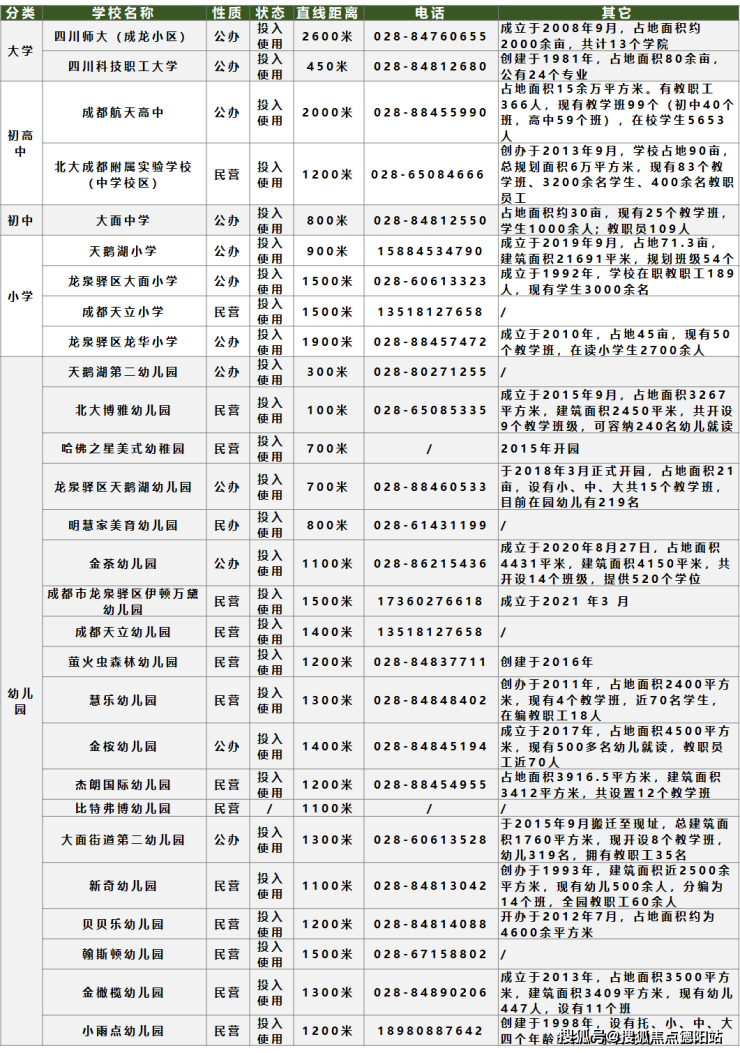 项目半径3.0公里范围内,共计2所大学(均为公办),项目半径2公里范围内,共计2所初高中学校(1所公办)、1所初中(公办)、4所小学(3所公办),项目半径1.5公里范围内,共计19所幼儿园(5所公办),教育资源比较充足。