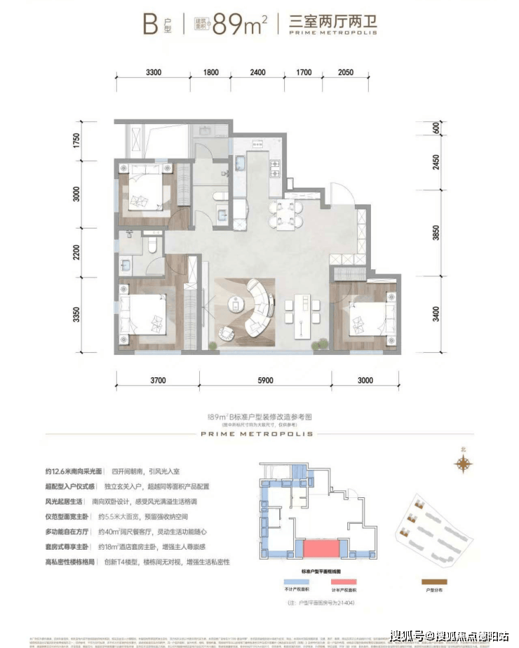 89㎡(2T4户,得房率约30%)