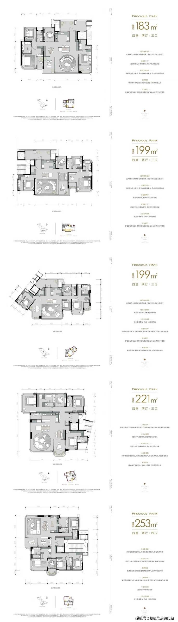 户型设计上,主打建面约180㎡起墅级超平层,户户均可灵动五房设计,全独立花园配置,室内四花园,270°全域采光,独梯入户,充分保障业主的私密感和尊崇感。