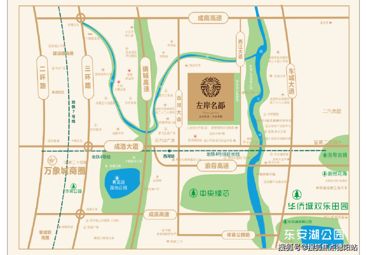 成都左岸名都位于成都市龙泉驿区西河街道,交通便利,区位优势突出,未来具有较大的发展潜力。