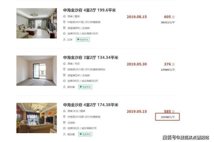 成都金沙宸宇公馆项目周边的二手房;中海金沙府,2012年的小区,二手挂牌价在2.9-3.4万/㎡,其中可以看河景公园的二手房成交价高达3.3万/㎡。