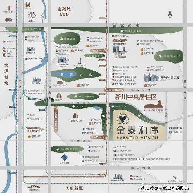 从位置来说,金泰和序择址的新川南,上承高新,下接天新,是近年来高新乃至城南大力发展区域。新川相较高新其它板块有着更磅礴的规划,其打造逻辑就是以“产城”为基底,随着天府软件园二期(待建)、AI创新中心等多个重量级产业的落地,吸金指数和造富能力日益强劲,已迎来区域爆发期。十年发展,早期开发的新川北侧已趋于饱和,南侧则有着较多的住宅用地储备,未来潜力无限。