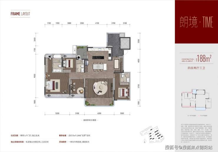 项目仅818户,合计24栋,全南北通透,全2T2户,主打143平、188平、225平的高定产品