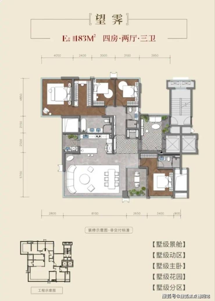 产品定位:精装改善盘,主力户型128-183㎡,均价3-4万/㎡(总价约379-730万),得房率110%-115%(新规赠送优势)。