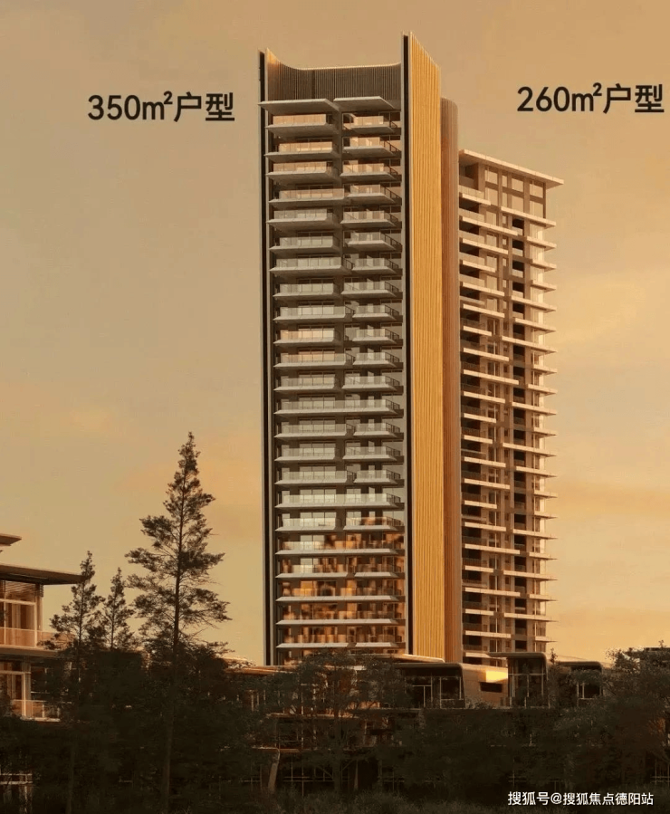 外立面1/2栋式钢琴键盘来自麓湖沚院的延续,3/4栋玻璃盒子的升级版来自麒麟荟的迭代,5栋楼王更是造型特别不一样,更像芝麻开花节节高升。
