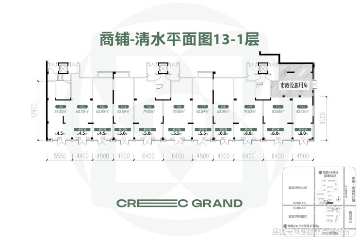 14.得铺率高:公摊率极低,得铺率极高,仅约1.8%公摊,且8间商铺额外赠送约3㎡