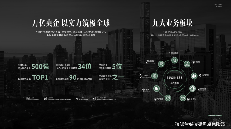 九大业务板块覆盖全球90多个国家/世界500强/亚洲建筑企业TOP1/中国企业排名第5/全球地标缔造者