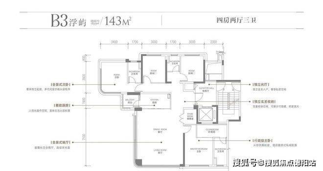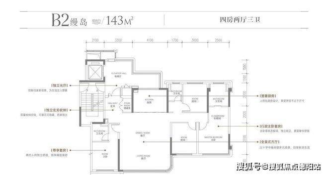 建面约143㎡ | 高奢四房•光厅双厅三卫