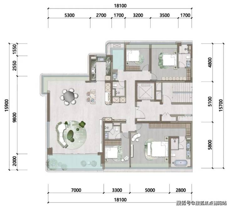 作为一个约245㎡的大平层,该户型的四间卧室有三个都是套房设计,其中主卧套房约45㎡,拥有超大的睡眠区、衣帽间以及五件套的豪华主卫。而其它卧室也都保持了非常舒适的空间尺度,属于可满足多人口家庭的终极改善型产品。