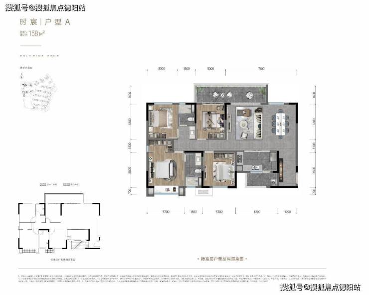 户型A:158平米,四室两厅两卫,南北向,港式经典横厅,动静分区