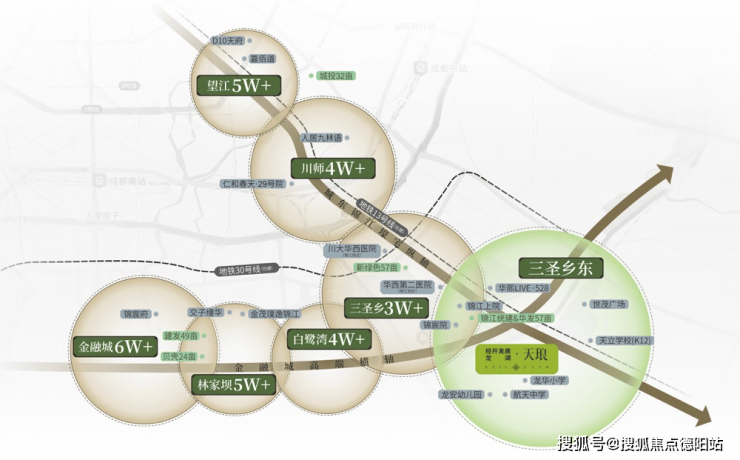 成都高端史,半壁在东南。2025成都楼市地价与房价的双重跃升,高端壕宅与新晋地王高度集中,以成都东南为导向,构成主流高端人居版图。两大壕宅轴线的交汇处,一个全新顶流板块——【三圣乡东】成为高端置业新热点。
