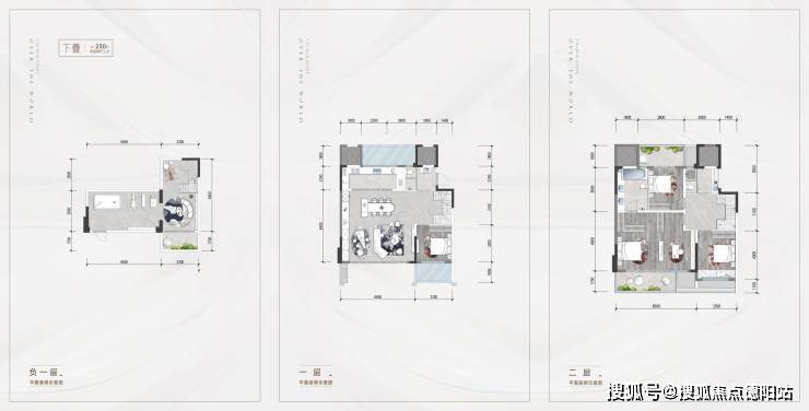 下叠230平米,中叠209平米,上叠237平米。