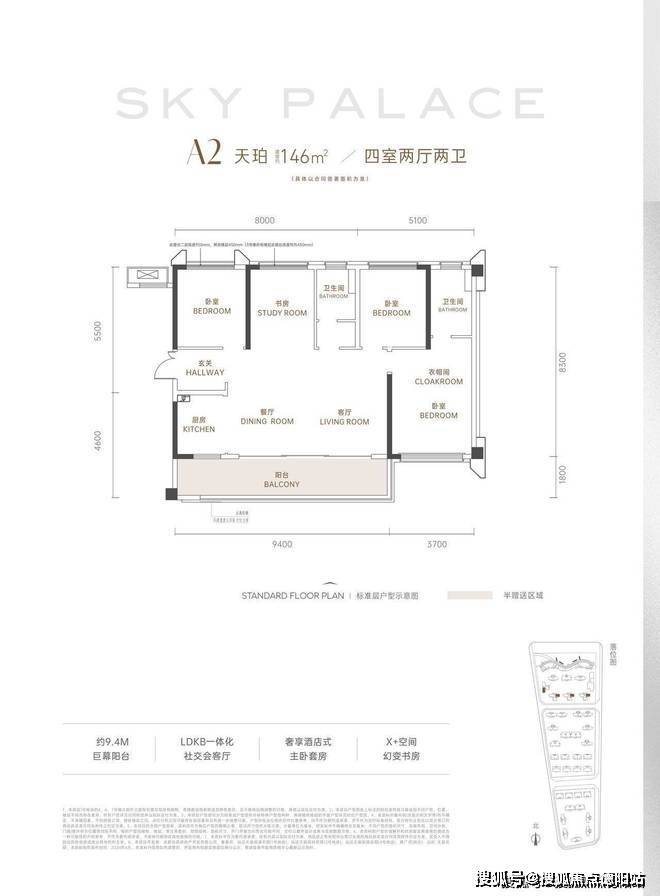 A2 – 天珀(建面约146㎡ 四室两厅两卫)